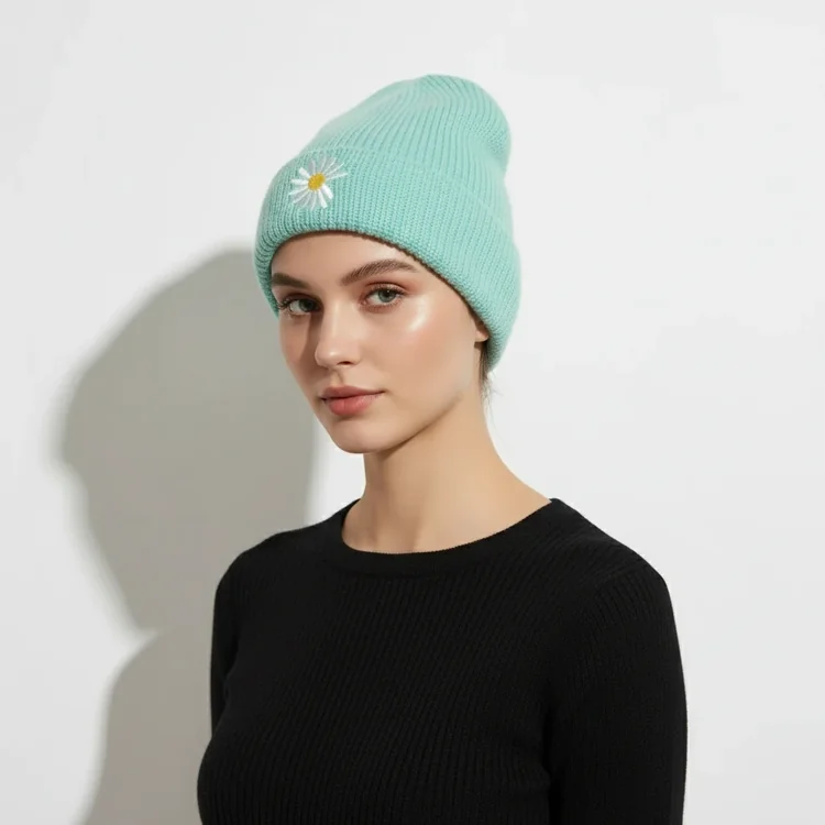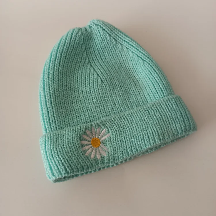 کلاه تک زنانه گل بابونه مدل بافتنی کد 52