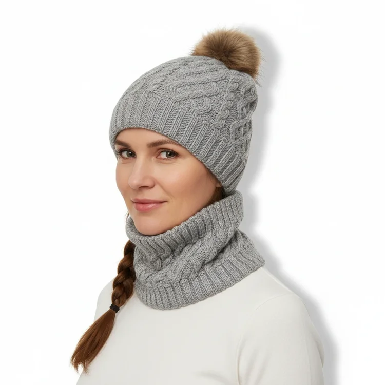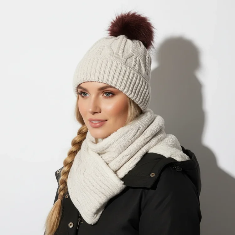 شال و کلاه زنانه خزدار رینگی مدل بافتنی کد 56