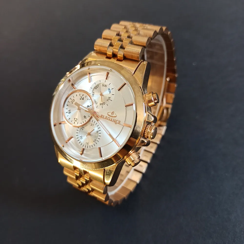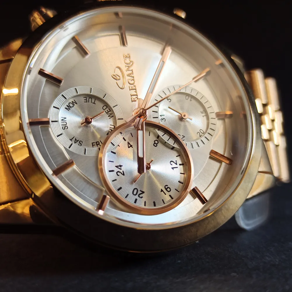 این مدل از برند الگانس برای استفاده روزمره و همچنین مجالس رسمی گزینهای ایدهآل است. موتورهای این ساعت از نوع ژاپنی بوده و دقت بالایی در نمایش زمان دارند.