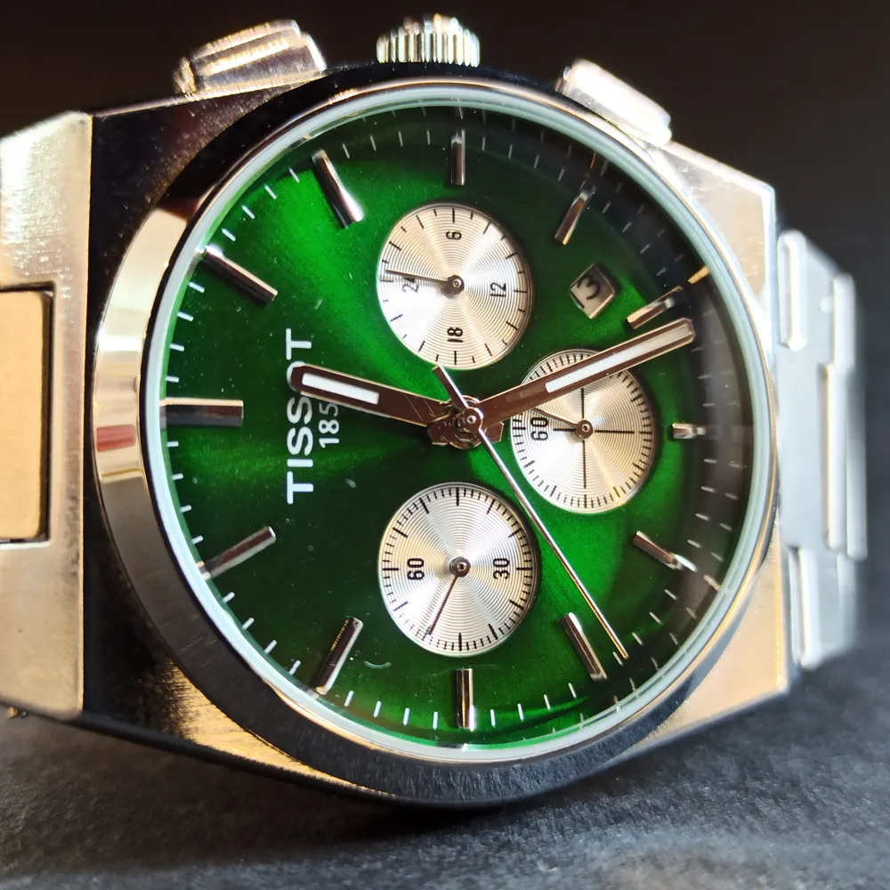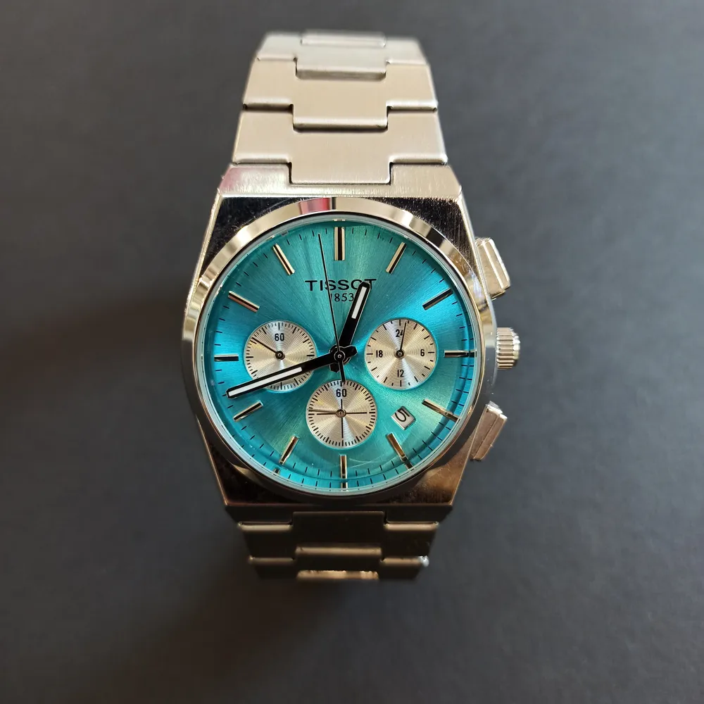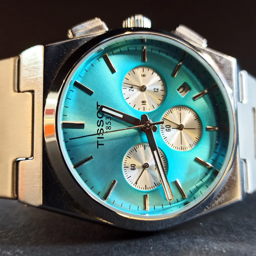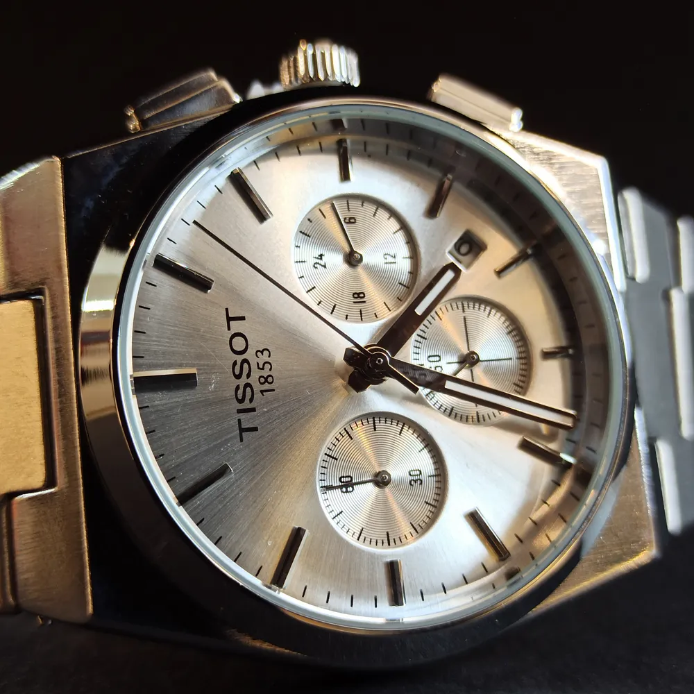 این ساعت دارای سه موتور فعال است که عملکردهای متنوعی همچون نمایش تاریخ و کرنوگراف را ارائه میدهند. طراحی صفحه این محصول به گونهای است که علاوه بر خوانایی بالا، زیبایی خاصی به آن بخشیده است. لوگوی برند تیسوت نیز در قسمت مرکزی صفحه، اصالت و کیفیت این محصول را نشان میدهد.