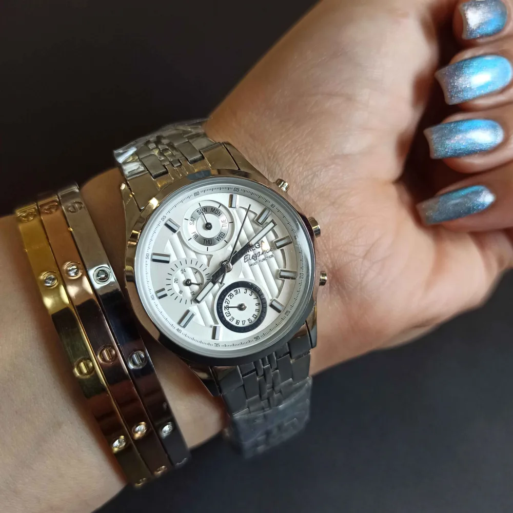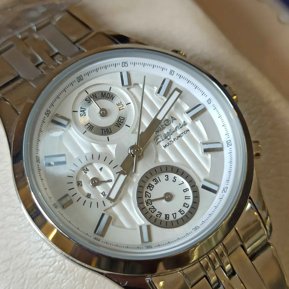 یکی از ویژگیهای بارز این ساعت، نمایشگرهای چندگانه آن است که شامل نمایشگر تاریخ، روزهای هفته و ساعت به صورت AM/PM میباشد. این امکانات، ساعت مگا الگانس را به گزینهای ایدهآل برای خانمهای شیکپوش تبدیل کرده است.