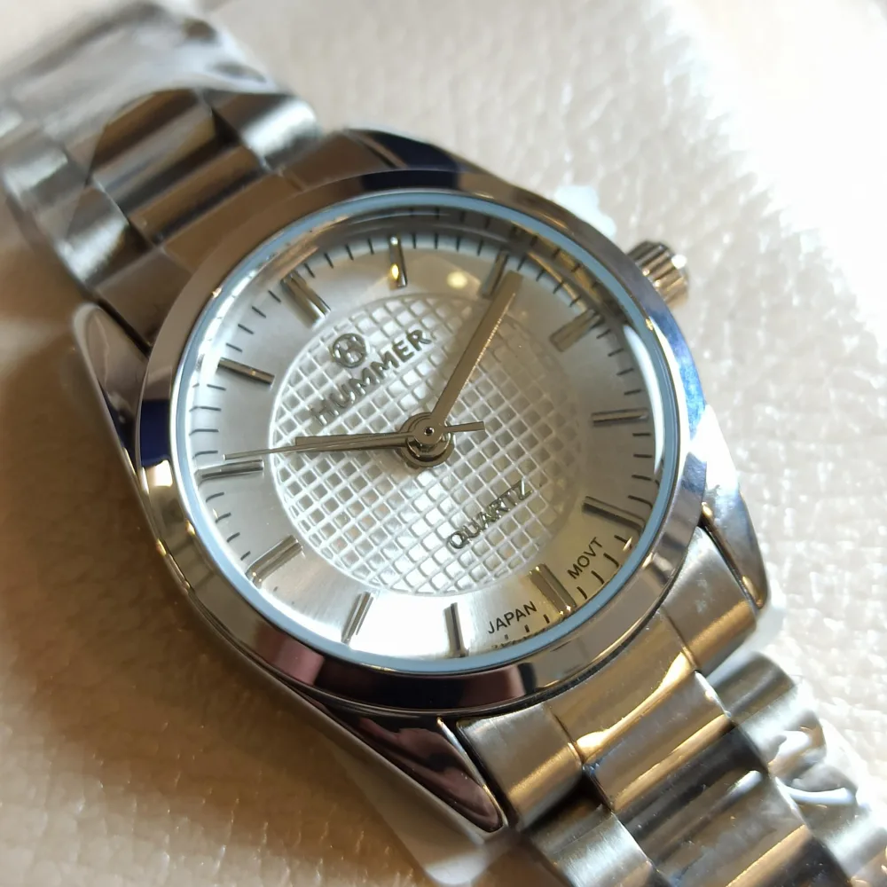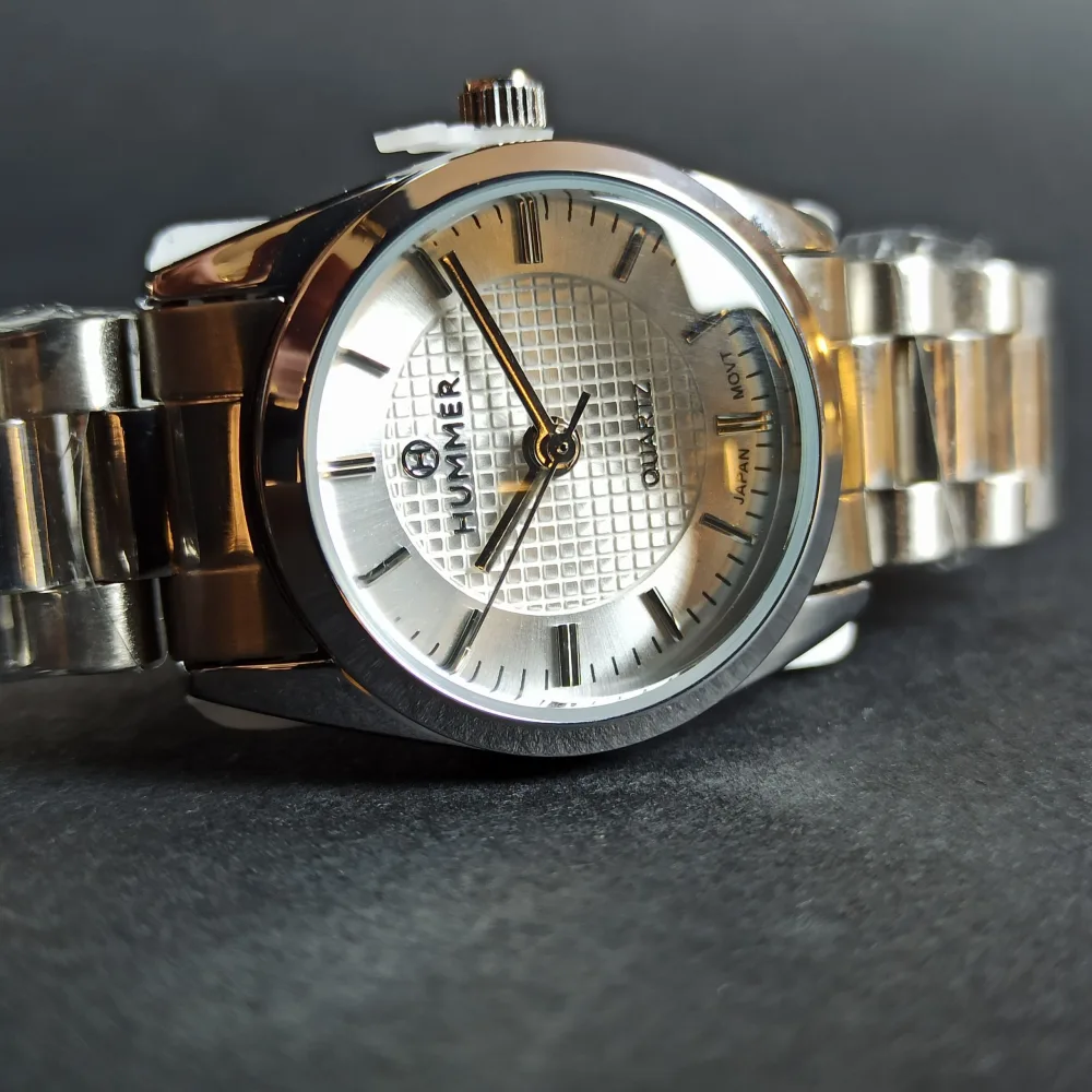 طراحی ۳بعدی صفحه ساعت همراه با حک برند هامر داخل آن، جلوهای خاص به این محصول داده است. رنگ نقرهای بند و قاب در کنار صفحه سفید، ترکیب رنگی شیک و کلاسیکی را به نمایش میگذارد که مناسب استفاده روزمره و مجالس رسمی است.