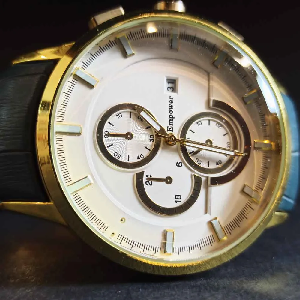 ساعت امپاور کد ۴۶۹ با موتور شرکتی درجه یک و طرح ۳ موتوره، دقت و دوام بالایی را ارائه میدهد. بدنه این ساعت از قاب باکیفیت و بند چرمی ضد حساسیت ساخته شده است که علاوه بر راحتی، ظاهری لوکس به آن میبخشد. شیشه کریستالی ضدخش نیز محافظت بیشتری را برای صفحه ساعت فراهم میکند.