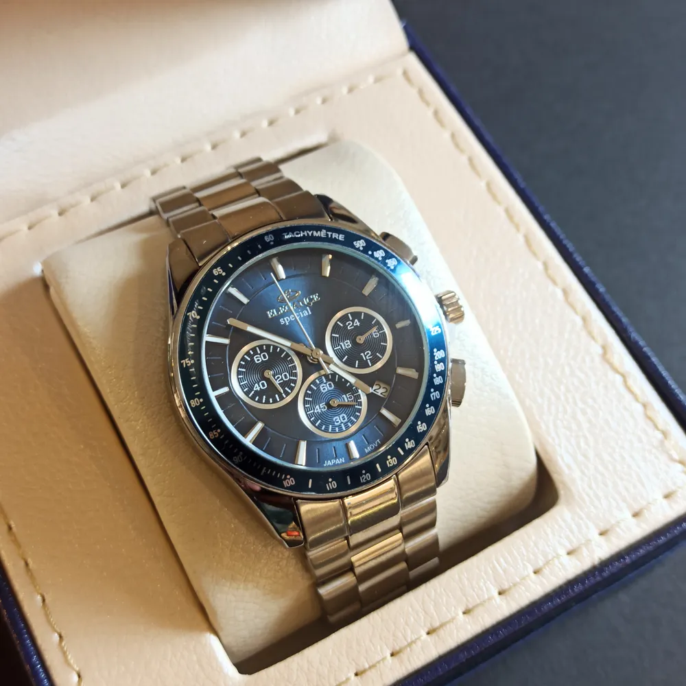 این ساعت با استفاده از متریالهای درجه یک و طراحی حرفهای ساخته شده است. صفحه نمایش بزرگ و خوانا، در کنار عقربههای دقیق و سه موتوره، جلوهای لوکس به این ساعت بخشیده است. همچنین، بند مقاوم و ضد حساسیت آن، راحتی را در استفاده روزانه تضمین میکند.
