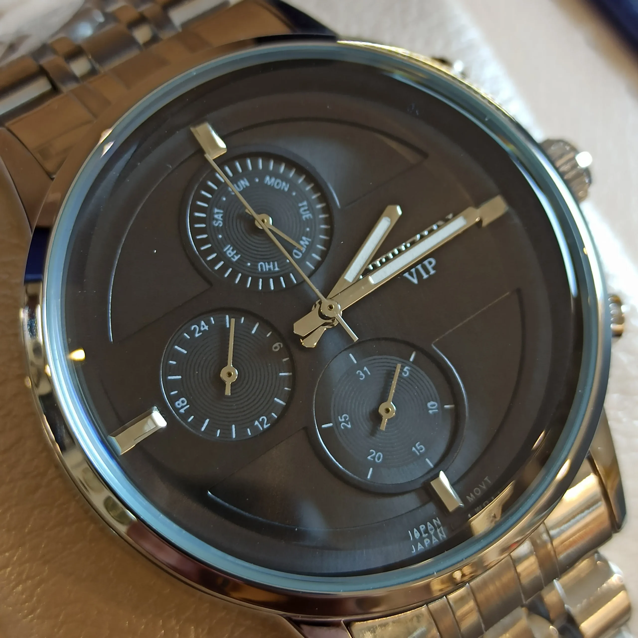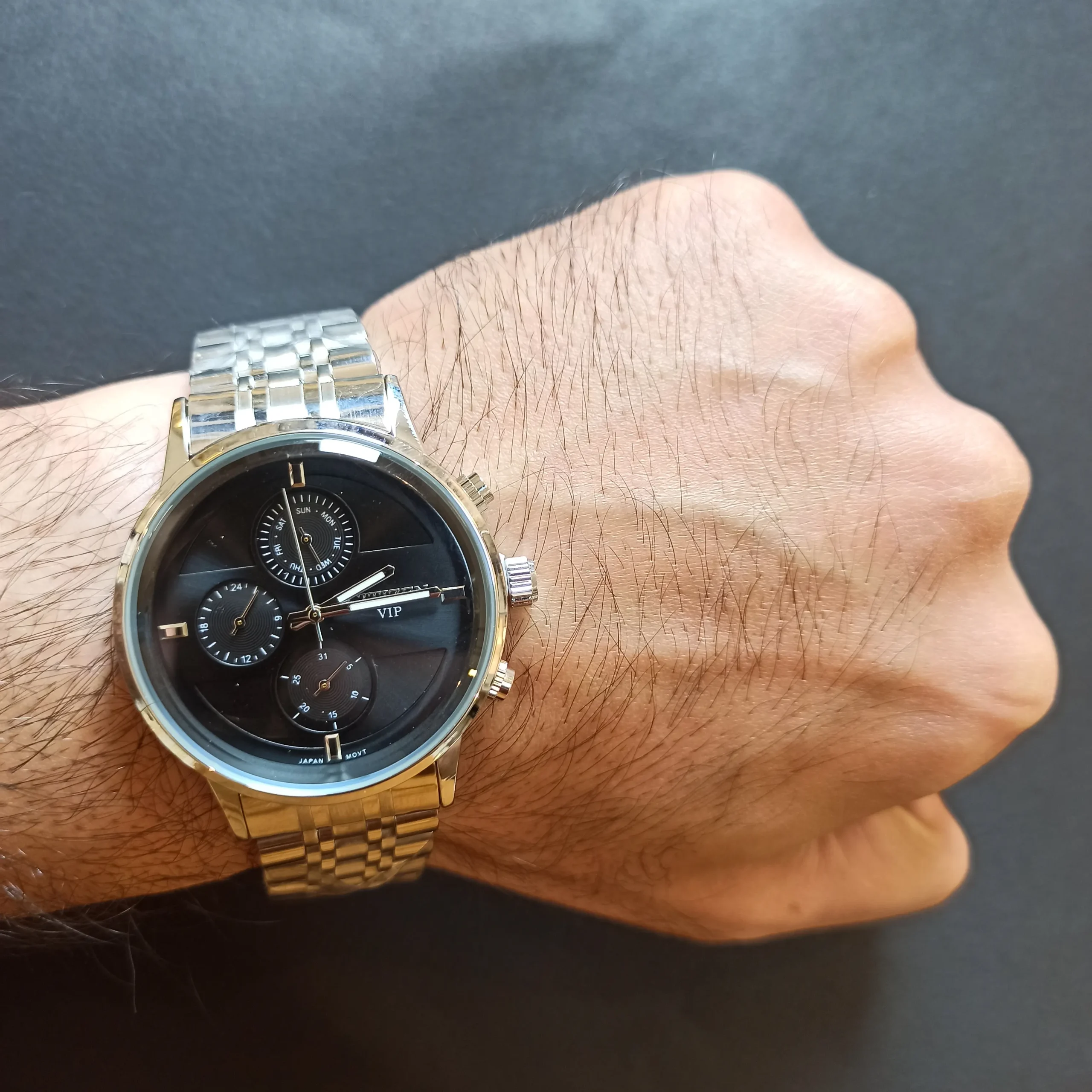 این ساعت از موتور میوتا ژاپنی گرید A بهره میبرد که دقت و دوام بالایی دارد. همچنین دارای ۳ موتور فعال فول تایم است که عملکردی بینقص را تضمین میکند. قاب و بند ساعت از فولاد استیل ۳۰۴ ساخته شده که ضد زنگ و رنگ ثابت است. شیشه کریستال ضدخش، زیبایی و مقاومت ساعت را دوچندان کرده و مدل قفل پروانهای، استفاده از آن را آسان و ایمن میکند.