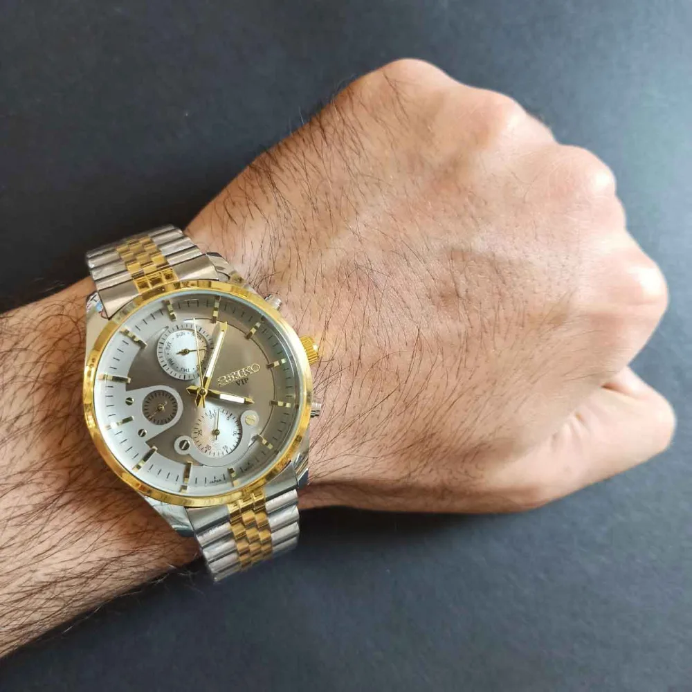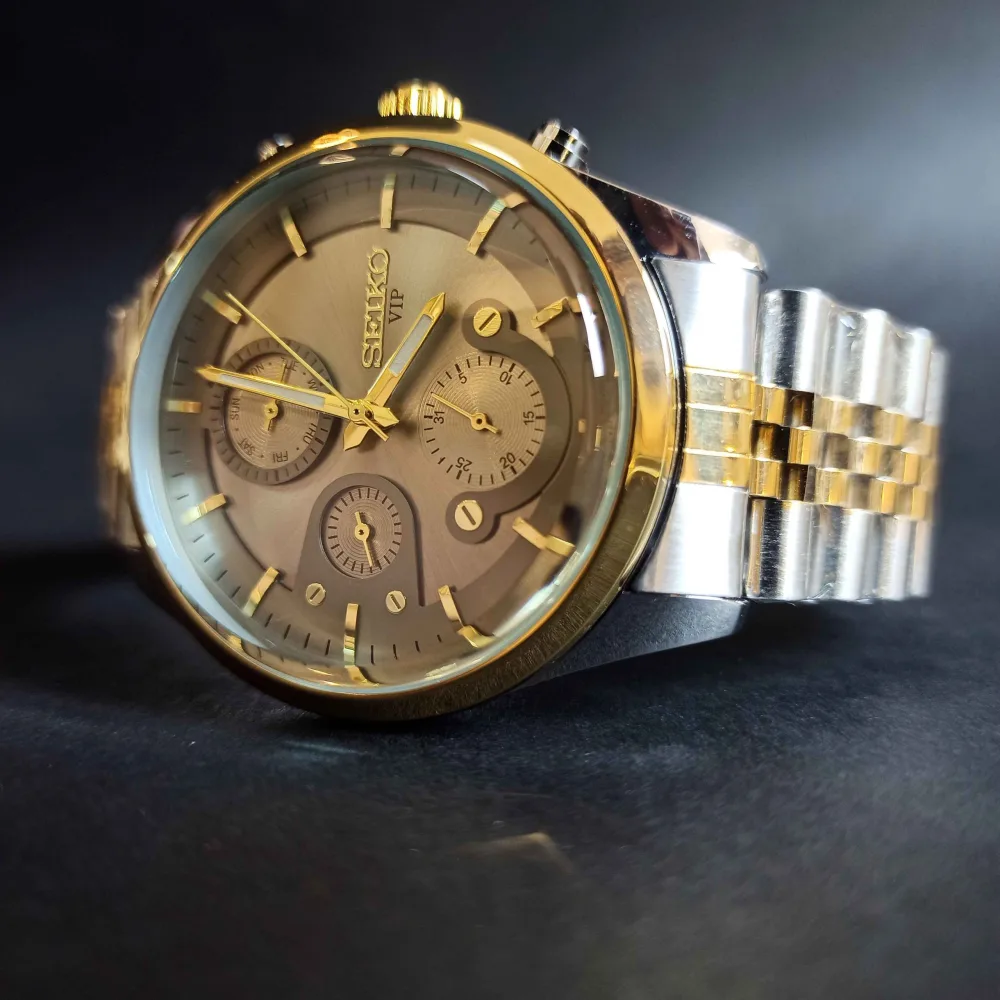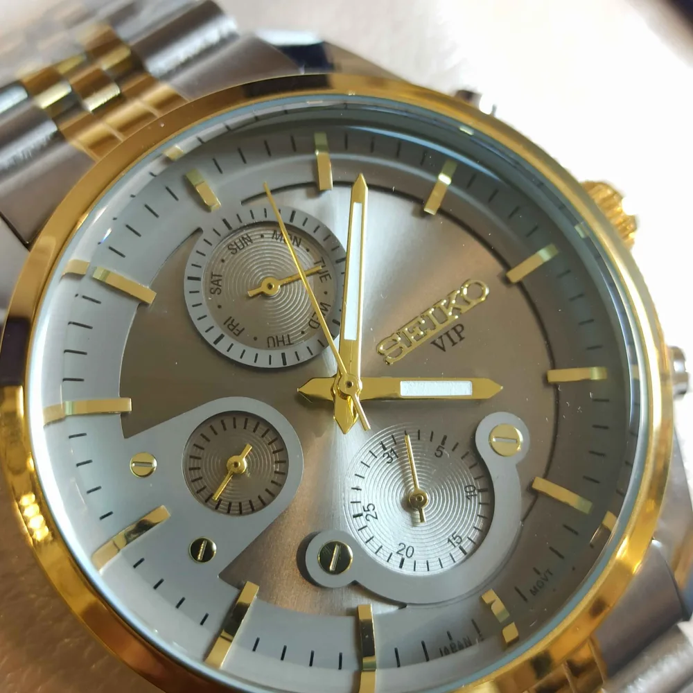 ساعت مچی مردانه سیکو VIP دارای سه موتور فول تایم است که عملکردی دقیق و بی‌نقص را فراهم می‌کند. طراحی سگمنت ۳بعدی طلایی و رنگ‌بندی نقره‌ای ـ طلایی به همراه صفحه طوسی، جلوه‌ای خاص و مدرن به این محصول داده است. همچنین، حک برند سیکو VIP داخل ساعت، اصالت این محصول را تضمین می‌کند.