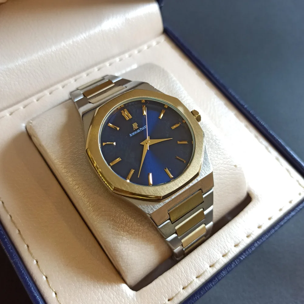 ساعت مچی برند AP با موتور قدرتمند ژاپنی A++ تضمین‌کننده عملکرد دقیق و بدون نقص است. جنس بند استیل ضد زنگ و شیشه کریستال ضدخش، دوام و زیبایی این ساعت را دوچندان کرده است. قفل استیل مخفی نیز به طراحی مدرن آن افزوده است.