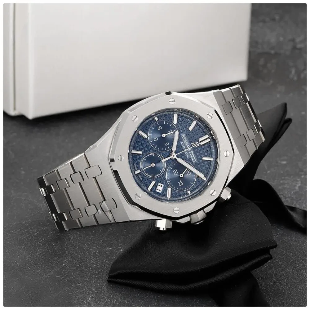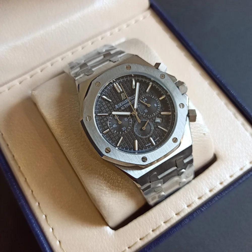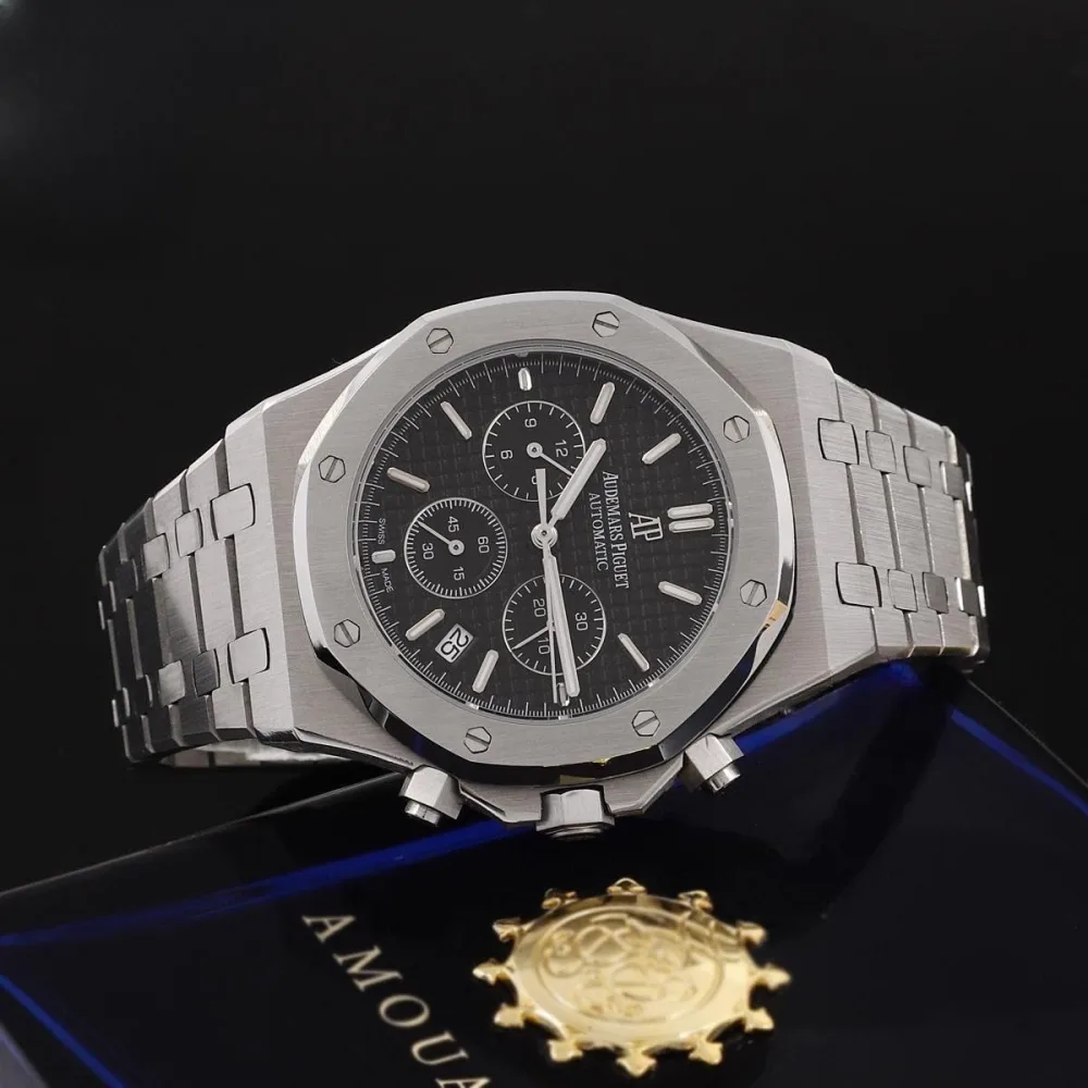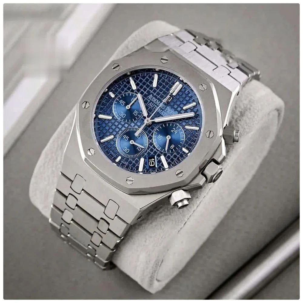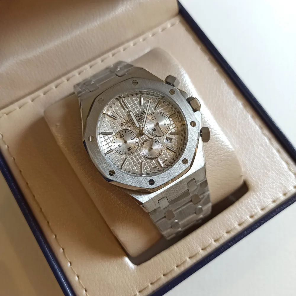 این ساعت با موتور اصلی ژاپنی میوتا و سه موتور کرنوگراف، عملکردی دقیق و بینقص را تضمین میکند. طراحی قاب و بند فول استیل، مقاومت بالایی در برابر ضربه و فرسایش دارد. شیشه کریستال ضد خش نیز به دوام و زیبایی این ساعت افزوده است. همچنین لوگوی برجسته AP روی قاب، قفل و سردسته، اصالت این محصول را به نمایش میگذارد. این ساعت برای استفاده در موقعیتهای رسمی و روزانه کاملاً مناسب است.
