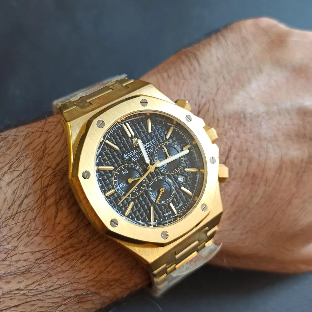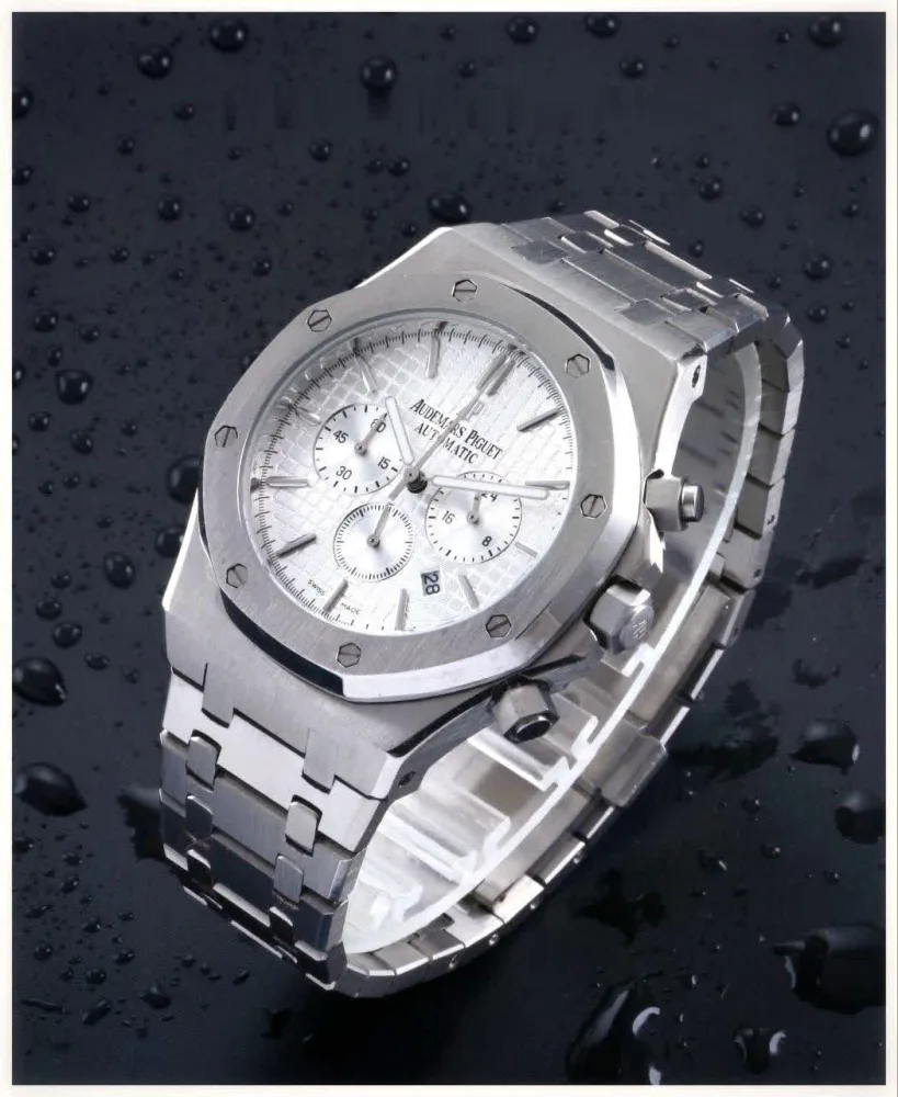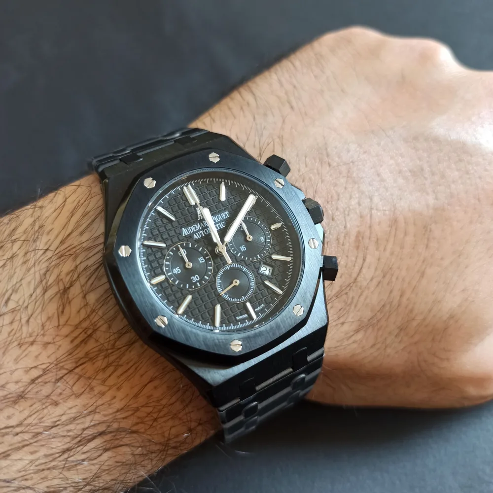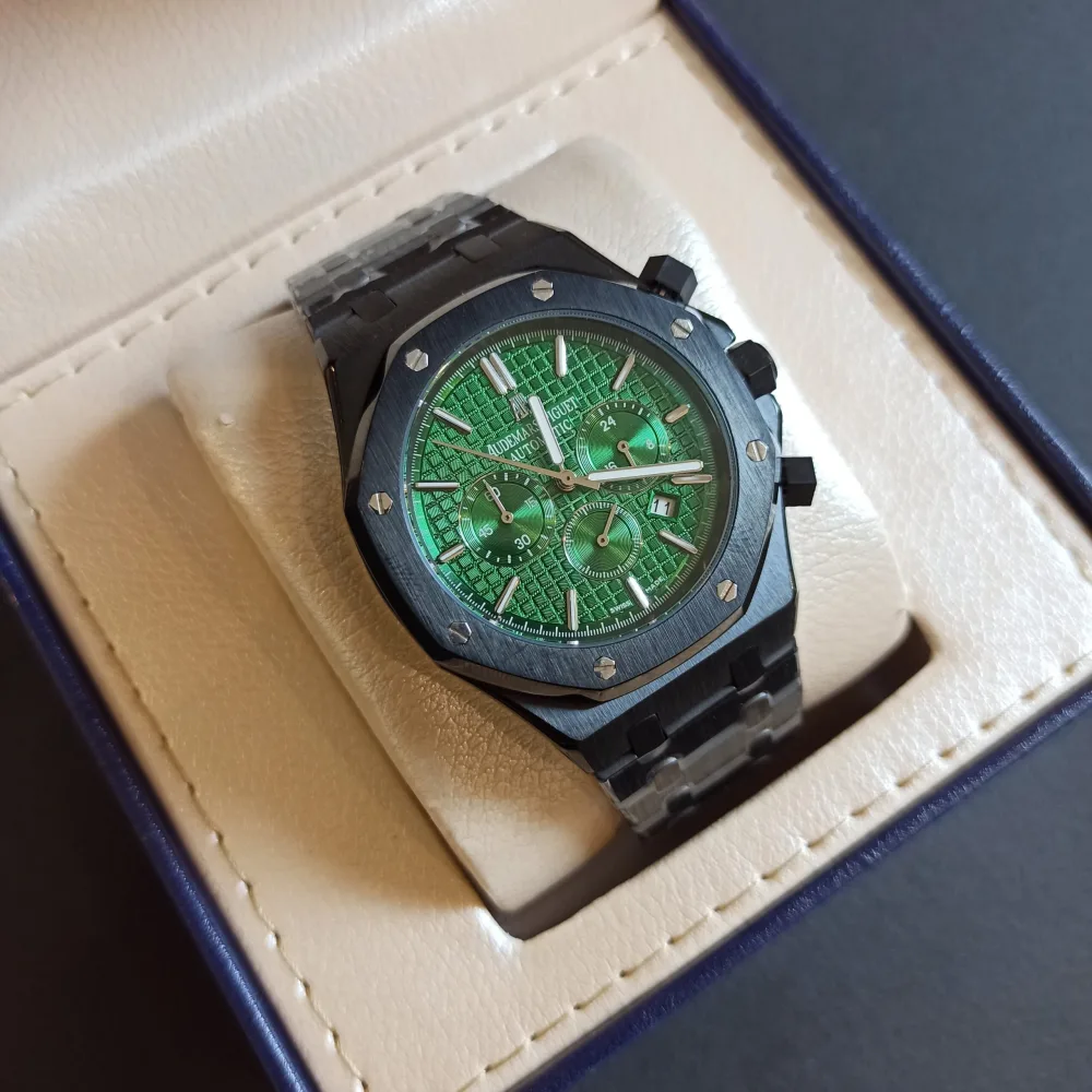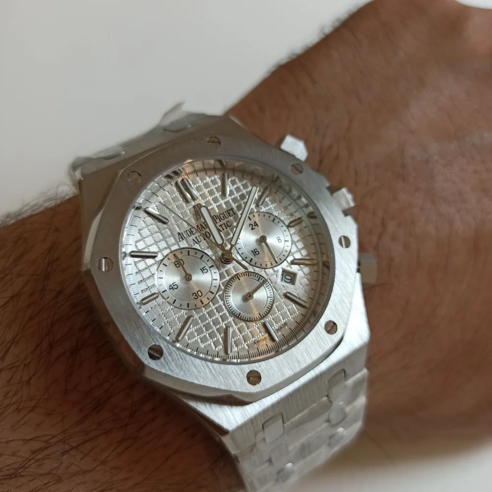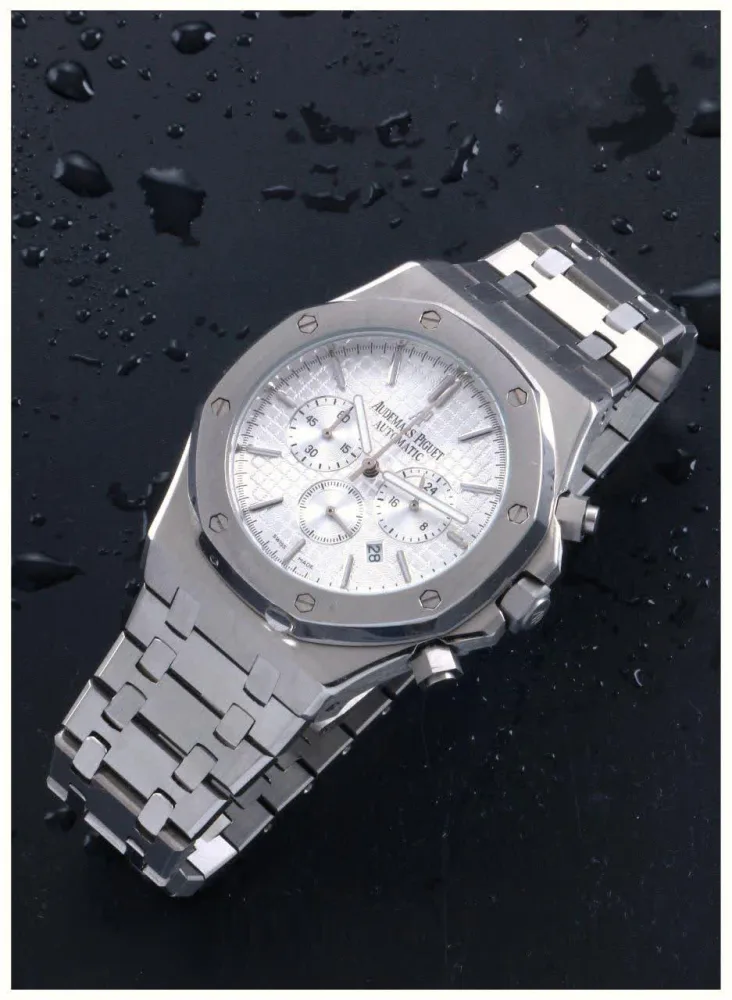 این ساعت با موتور اصلی ژاپنی میوتا و سه موتور کرنوگراف، عملکردی دقیق و بینقص را تضمین میکند. طراحی قاب و بند فول استیل، مقاومت بالایی در برابر ضربه و فرسایش دارد. شیشه کریستال ضد خش نیز به دوام و زیبایی این ساعت افزوده است. همچنین لوگوی برجسته AP روی قاب، قفل و سردسته، اصالت این محصول را به نمایش میگذارد. این ساعت برای استفاده در موقعیتهای رسمی و روزانه کاملاً مناسب است.