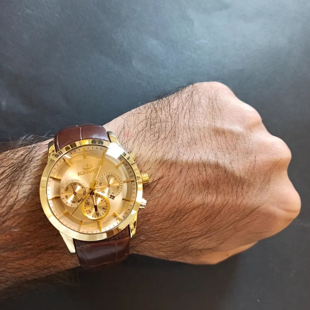 معرفی ساعت مچی مردانه برند الگانس بند چرم کد1274