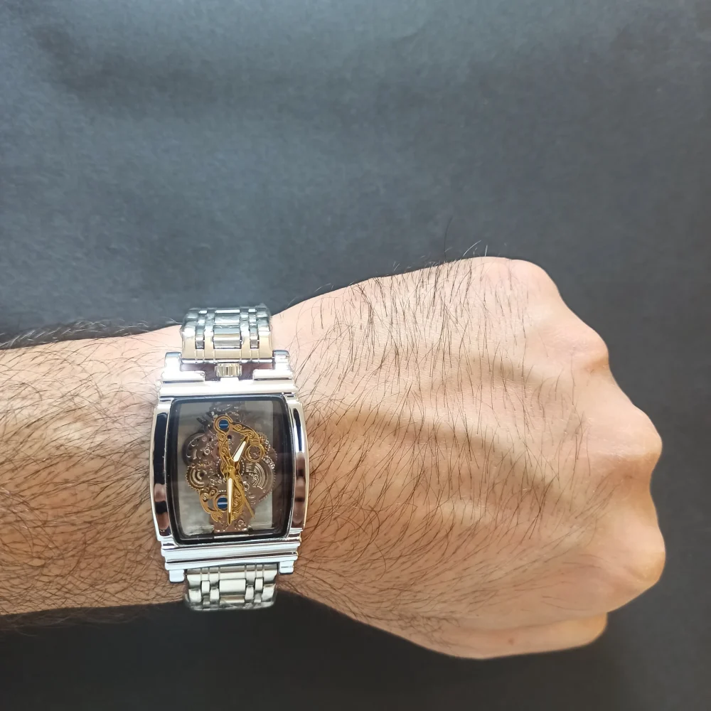 ابعاد این ساعت با قطر صفحه ۴۳ میلیمتر و وزن ۱۵۸ گرم، کاملاً مناسب برای استفاده روزمره و همچنین موقعیتهای رسمی است. همچنین، این محصول با حک برند بین باند داخل ساعت، اصالت و کیفیت خود را به نمایش میگذارد.