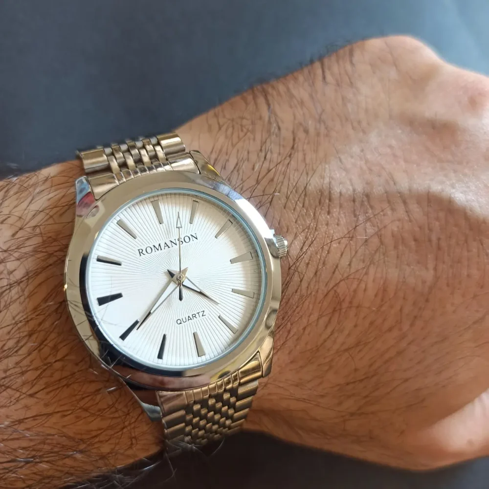 رنگ نقرهای بند و قاب در کنار صفحه سفید، ترکیبی از سادگی و جذابیت را ارائه میدهد. همچنین حک برند رمانسون داخل ساعت، اصالت این محصول را تضمین میکند.