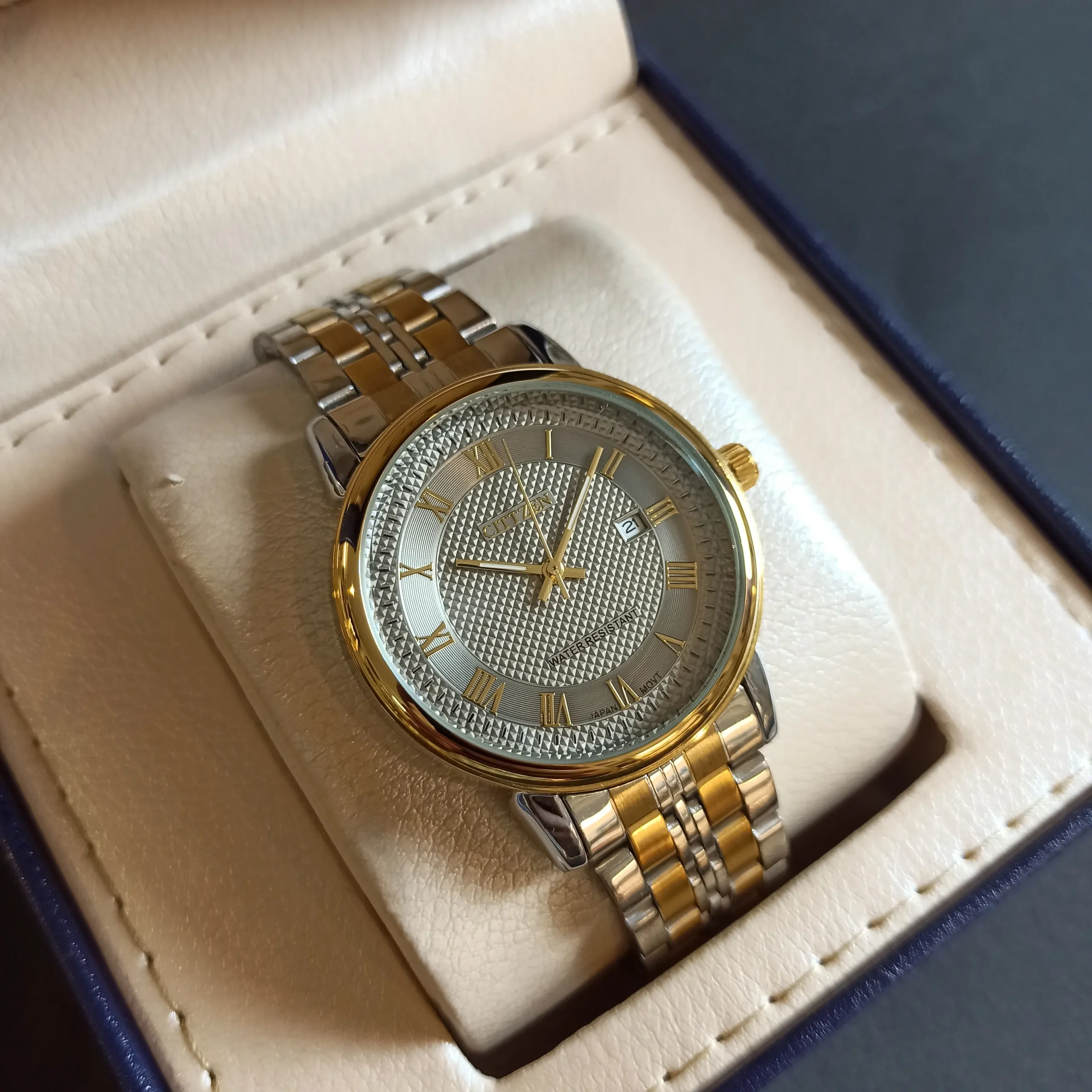 این ساعت با قاب و بند ساخته شده از فولاد استیل ۳۰۴ رنگ ثابت و ضد زنگ، مقاومت بالایی در برابر آسیبهای روزمره دارد. شیشه کریستال ضدخش آن به شما امکان میدهد تا از زیبایی و دوام ساعت در طولانیمدت لذت ببرید. طراحی قفل پروانهای و سگمنت سهبعدی صفحه، جلوهای مدرن و شیک به این محصول داده است. قطر صفحه 43 میلیمتر و وزن 158 گرم، باعث میشود که این ساعت بر روی مچ دست به خوبی قرار گیرد.