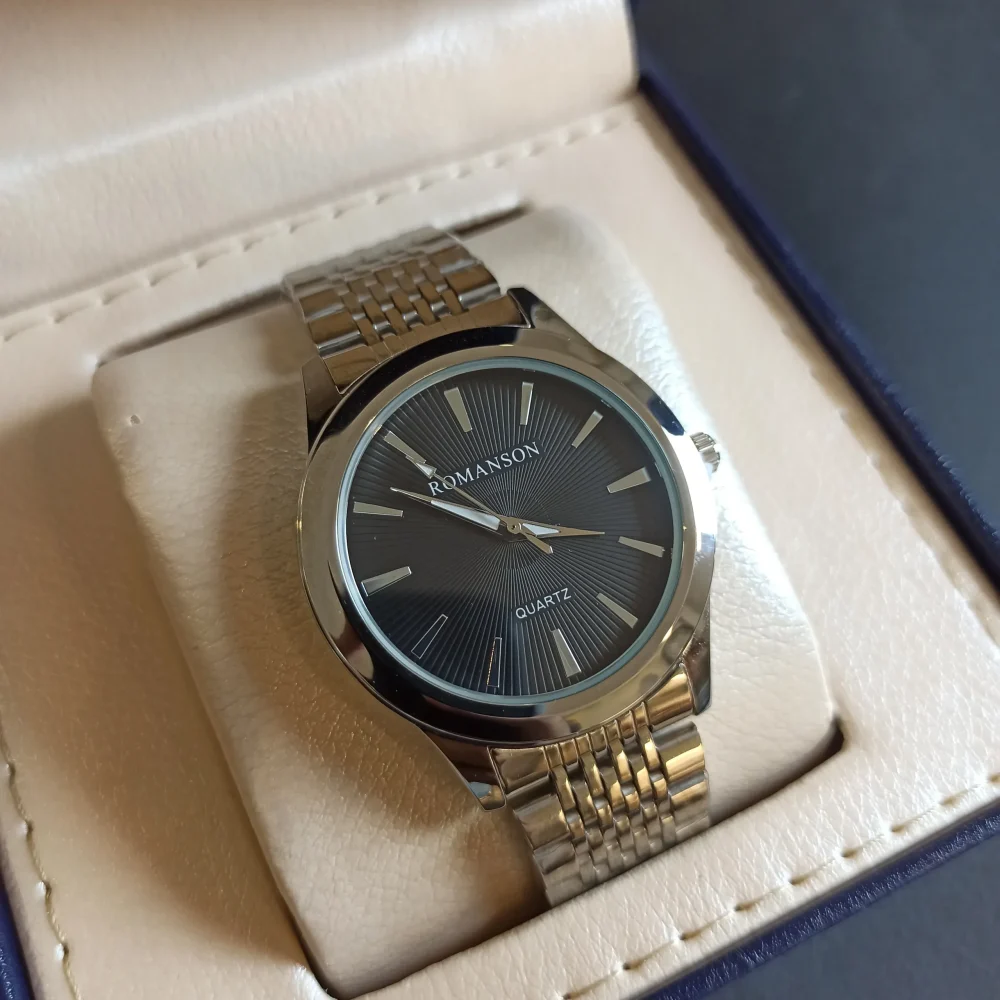 رنگبندی جذاب این محصول شامل بند نقرهای، دور قاب طلایی و صفحه مشکی است که ترکیبی کلاسیک و مدرن را به نمایش میگذارد. همچنین قفل پروانهای آن راحتی و امنیت بیشتری در استفاده روزمره فراهم میکند. قطر صفحه 43 میلیمتر و وزن دقیق ساعت 158 گرم است که باعث میشود این ساعت هم زیبا و هم سبک باشد.