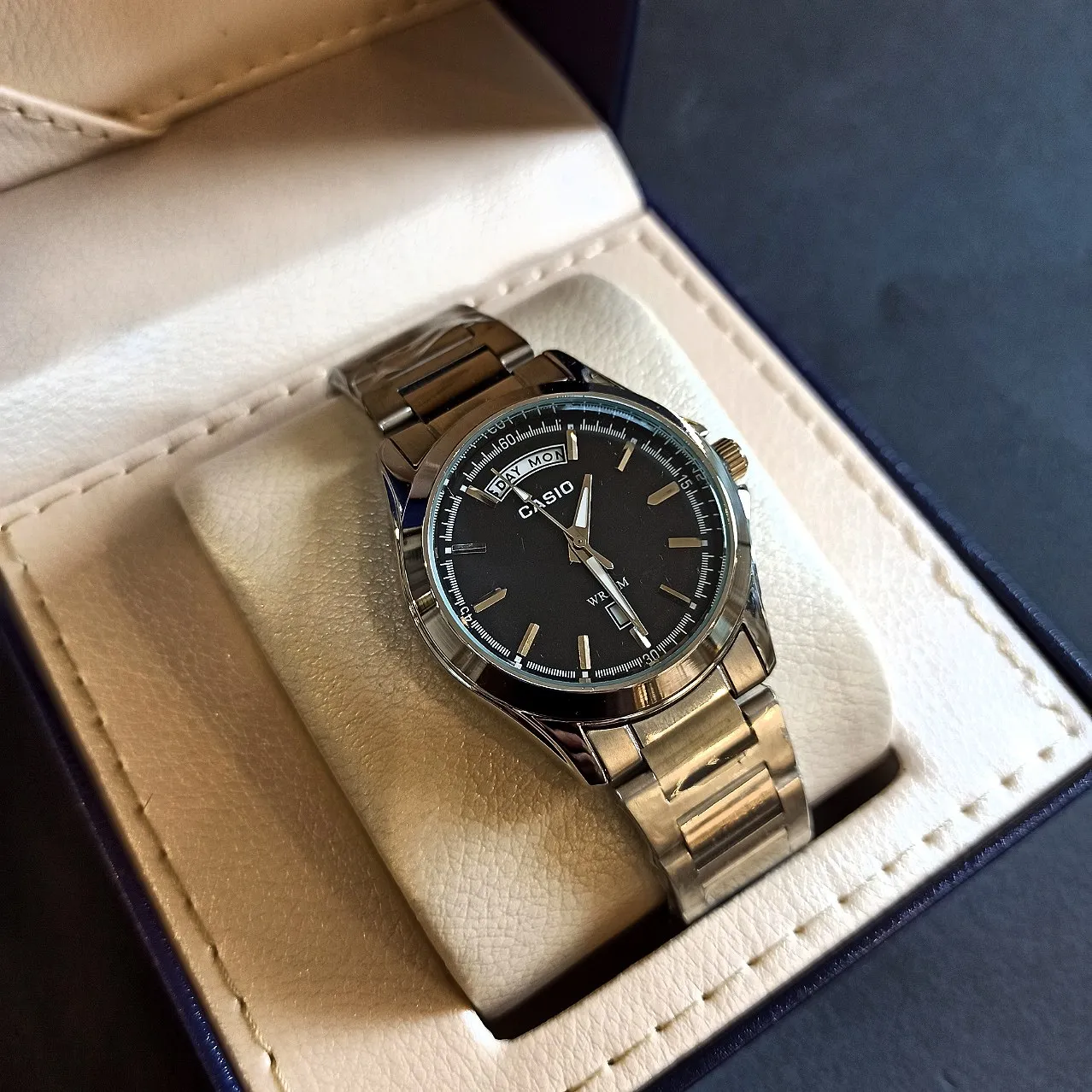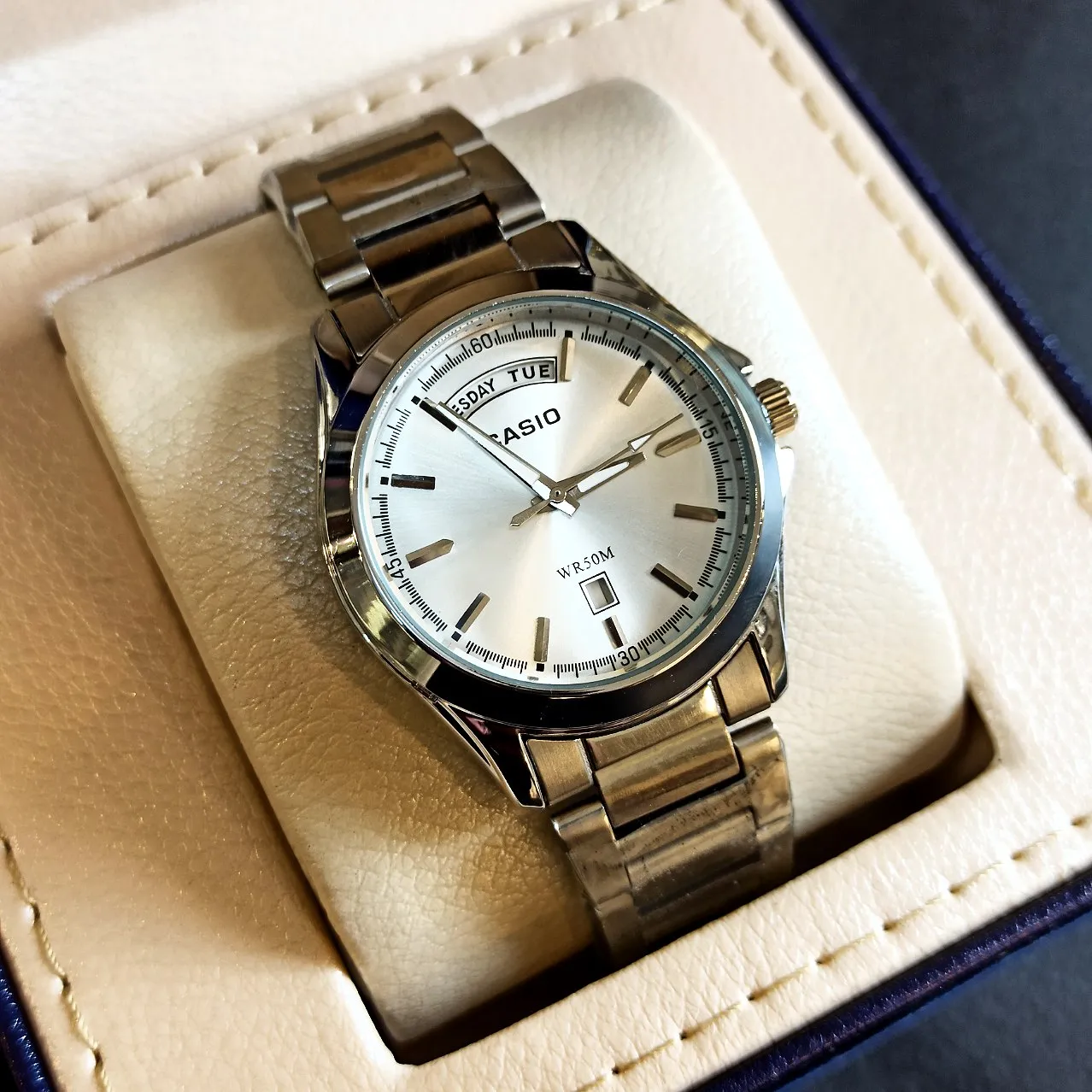 این ساعت مچی با دقت بالا و استفاده از متریال باکیفیت ساخته شده است. بند این مدل از جنس استیل ضد زنگ بوده که دوام بالایی دارد و به راحتی روی مچ دست قرار میگیرد. همچنین وجود تقویم در طراحی این ساعت، آن را به یک گزینه کاربردی و شیک تبدیل کرده است.
