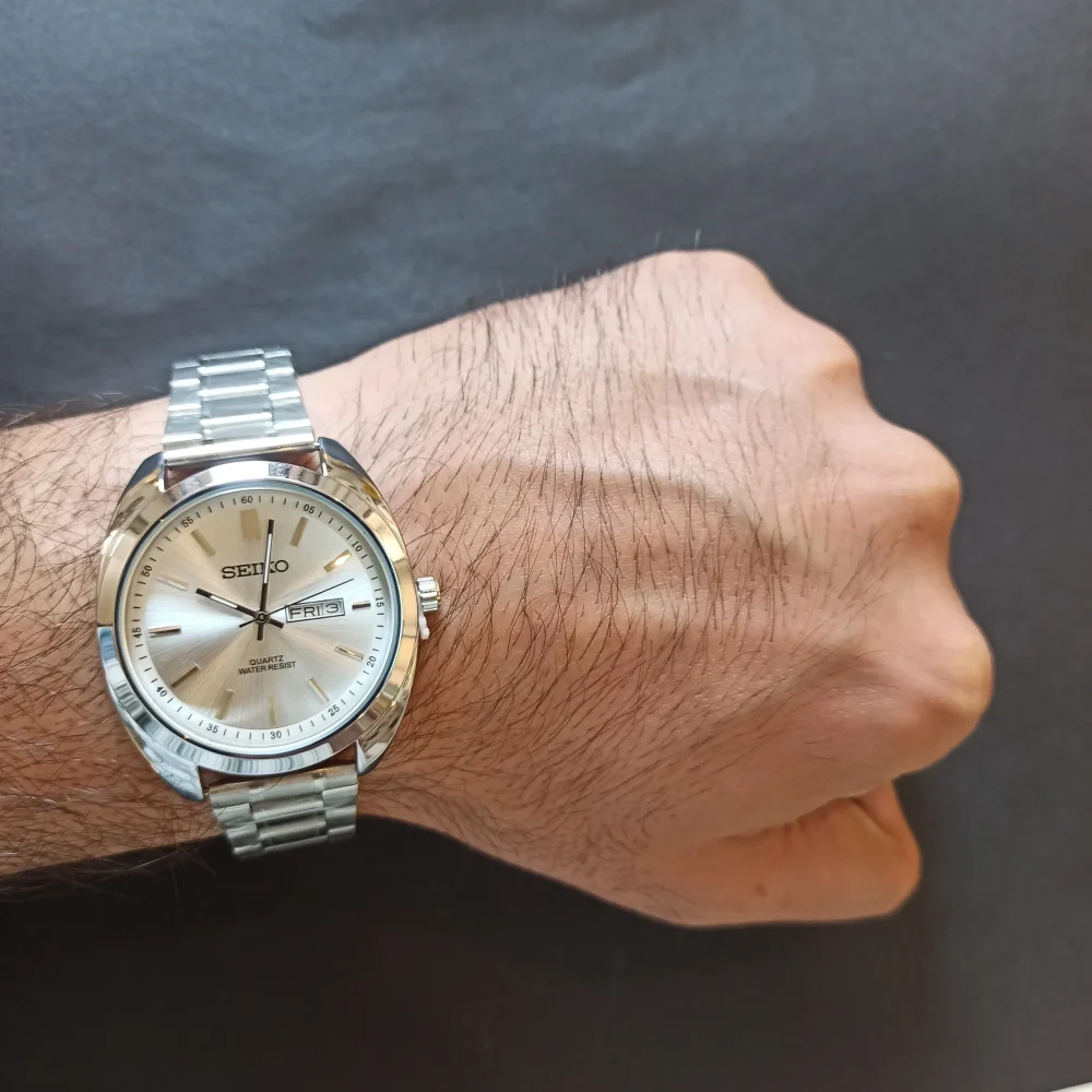 موتور شرکتی درجه یک این ساعت، با دقت عملکرد بالا، تضمینکننده کیفیت و دوام آن است. مدل قفل پروانهای نیز استفاده آسان و ایمنی در نگهداری ساعت را به همراه دارد. قطر صفحه 43 میلیمتر و وزن دقیق 158 گرم، تناسب عالی برای استفاده روزمره و رسمی ایجاد میکند.