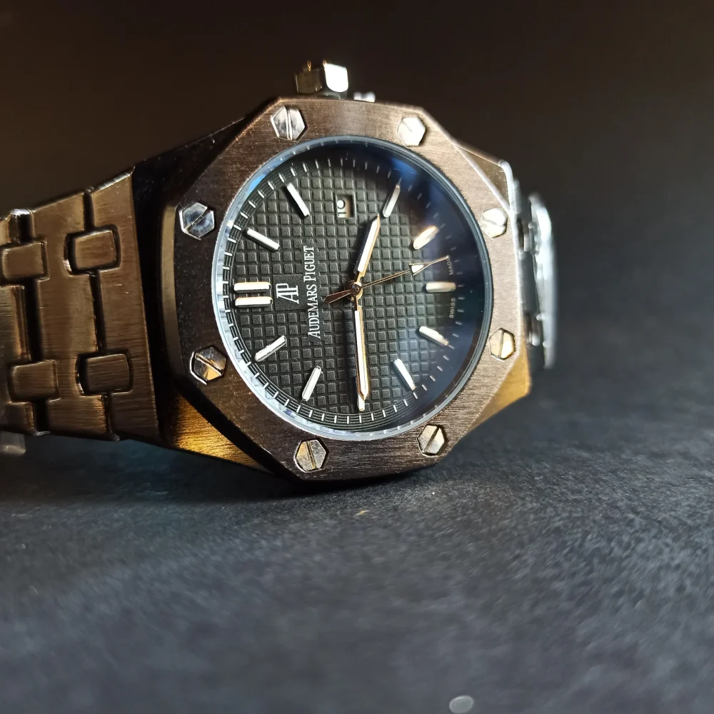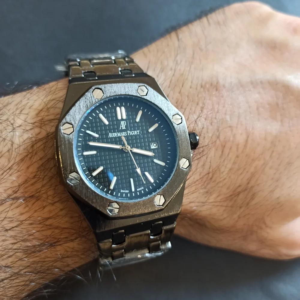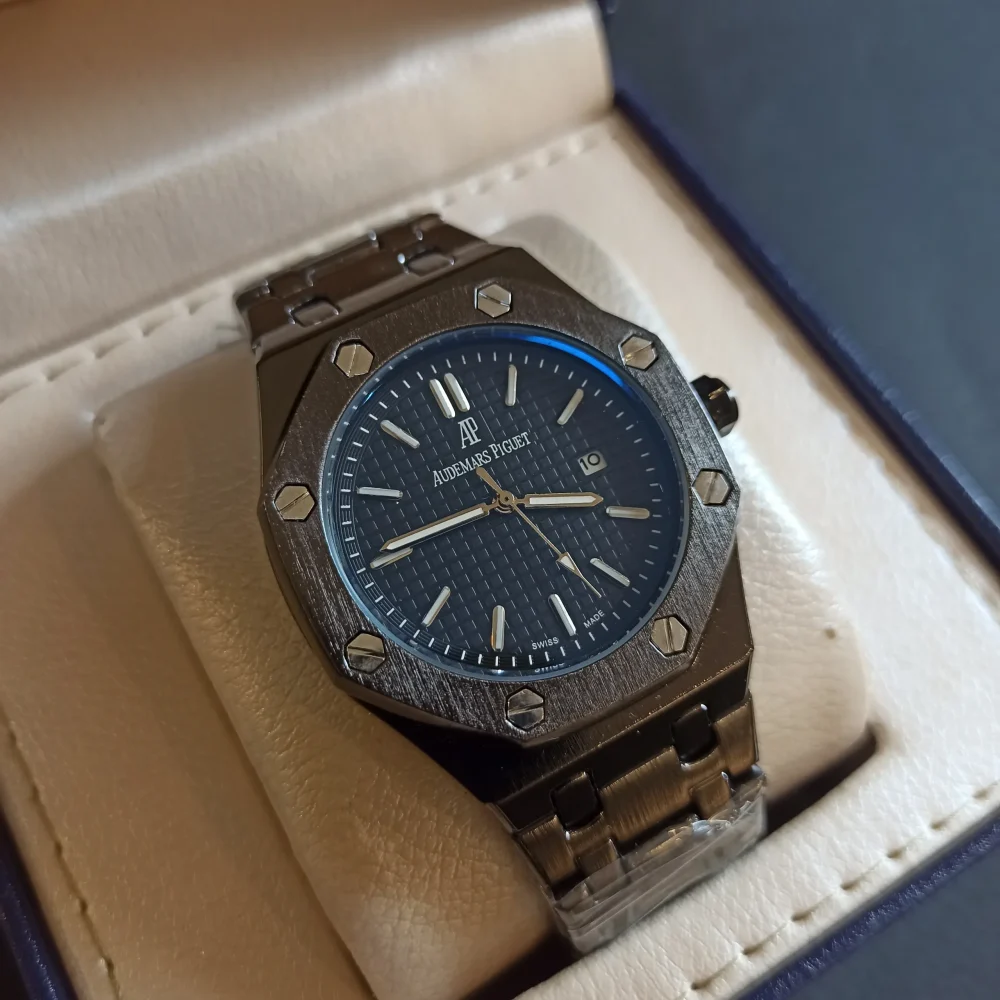 این ساعت دارای حک برند AP داخل بدنه بوده و کیفیت ضدآب آن تا سطح 3ATM (مناسب برای شستشوی دست) تست شده است. این ویژگی‌ها در کنار جعبه چوبی زیبا، پاکت و کارت گارانتی، ارزش خرید این محصول را افزایش داده است.