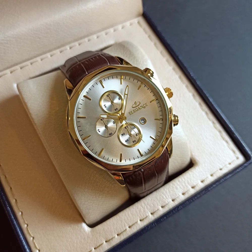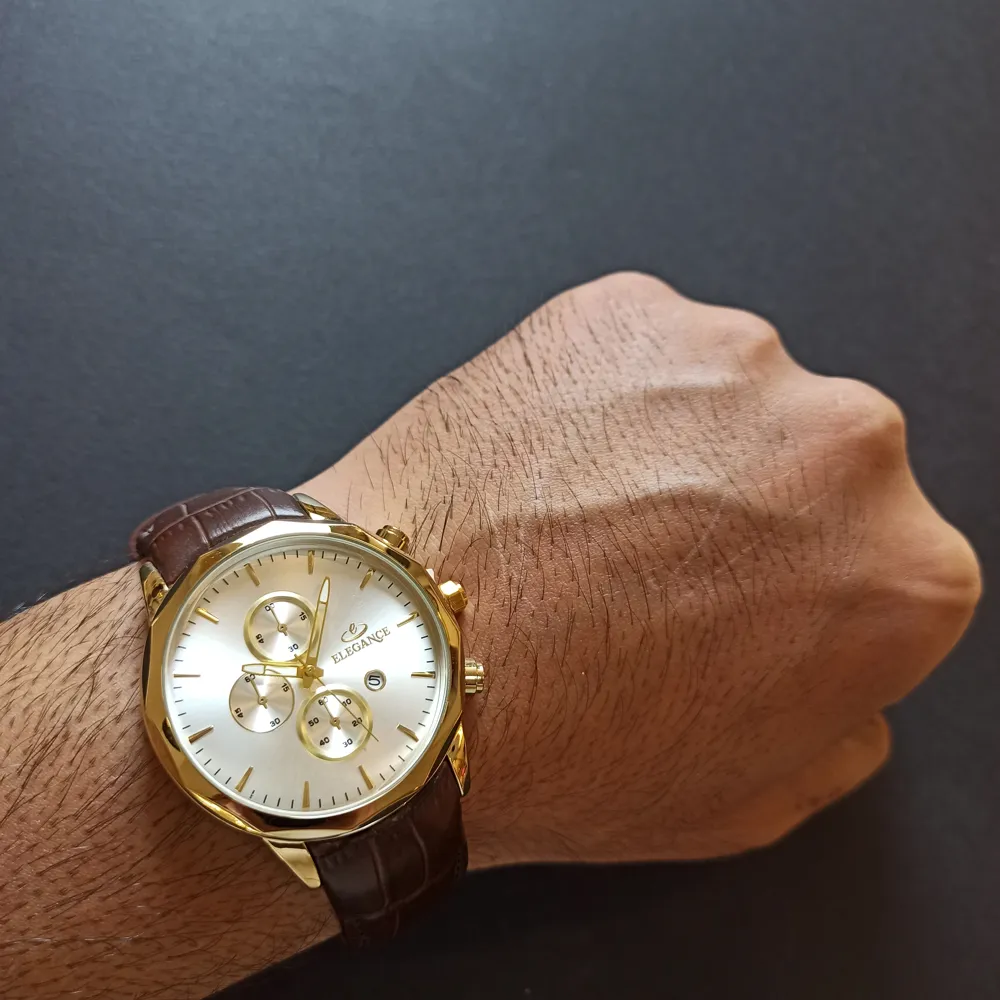 این ساعت مچی مردانه از بند چرمی باکیفیت ساخته شده که نه تنها دوام بالایی دارد، بلکه حس راحتی فوقالعادهای روی مچ دست ایجاد میکند. طراحی صفحه ساعت نیز با جزئیات دقیق و جذاب، جلوهای لوکس و مدرن به آن بخشیده است. برند الگانس همواره به کیفیت ساخت محصولات خود اهمیت داده و این مدل نیز از این قاعده مستثنی نیست.