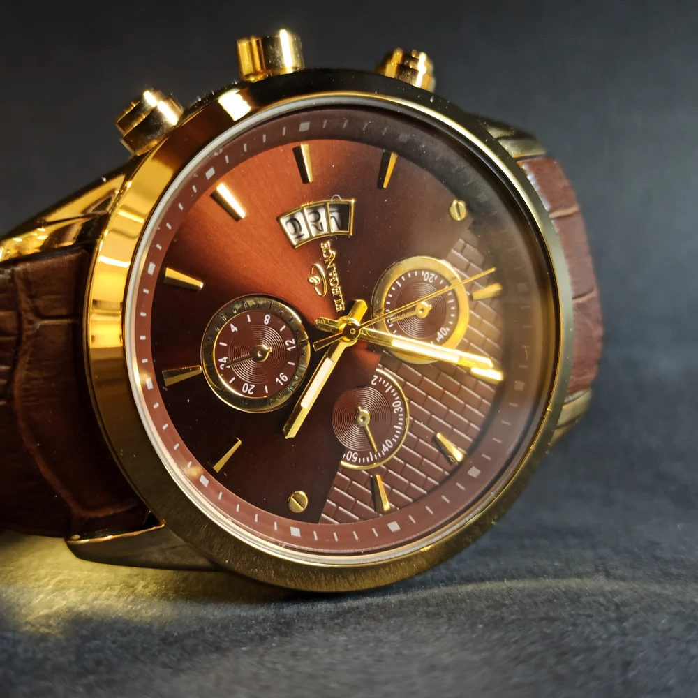 این ساعت با استفاده از مواد اولیه با کیفیت بالا تولید شده است که دوام و ماندگاری آن را تضمین میکند. بند چرمی نرم و مقاوم این محصول علاوه بر راحتی در استفاده، ظاهری لوکس به آن بخشیده است. صفحه نمایش آن نیز با طراحی زیبا و جزئیات دقیق، جلوهای خاص به استایل شما میدهد.
