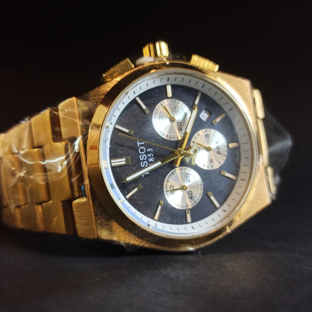 این ساعت با بدنهای از جنس فولاد استیل ۳۰۴ ساخته شده که علاوه بر مقاومت بالا، رنگ ثابت و ضد زنگ بودن آن را تضمین میکند. بند طلایی رنگ و صفحه سورمهای آن جلوهای لوکس و خاص به ساعت بخشیدهاند. کیفیت موتور این محصول، شرکتی درجه یک بوده و دارای سه موتور کرنوگراف است که عملکرد دقیق و حرفهای را ارائه میدهد.