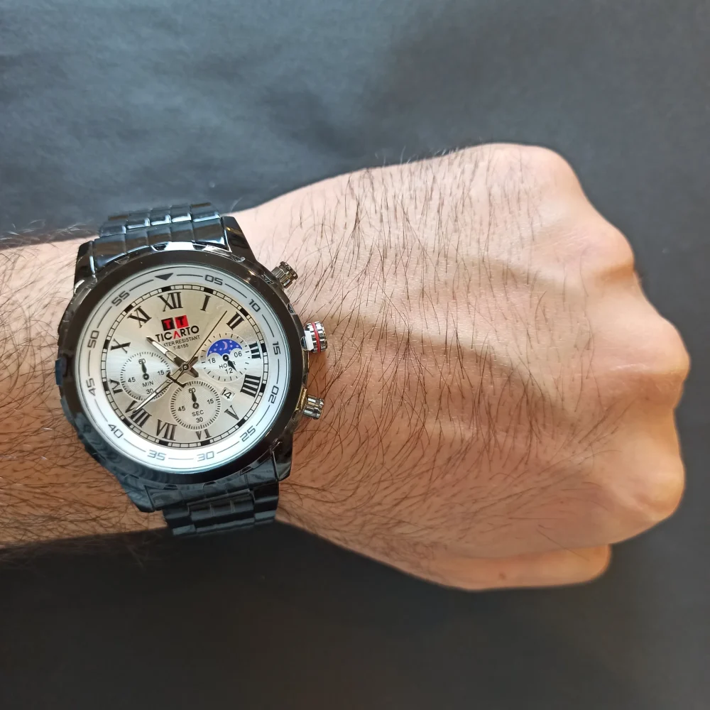 ساعت مچی مردانه تیکارتو کد334 با ویژگی‌های منحصربه‌فرد خود نظیر کیفیت بالای ساخت، طراحی شیک و مقاومت در برابر آب در حد دست شستن (3ATM)، گزینه‌ای ایده‌آل برای هر آقایی است. این ساعت همراه با جعبه چوبی زیبا، پاکت و کارت گارانتی ارائه می‌شود تا تجربه خرید شما را کامل کند. انتخاب این ساعت، ترکیبی از زیبایی و عملکرد را به شما هدیه می‌دهد.