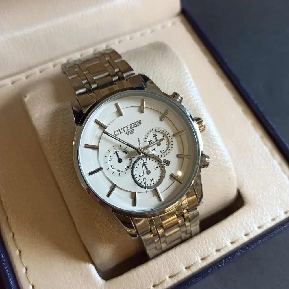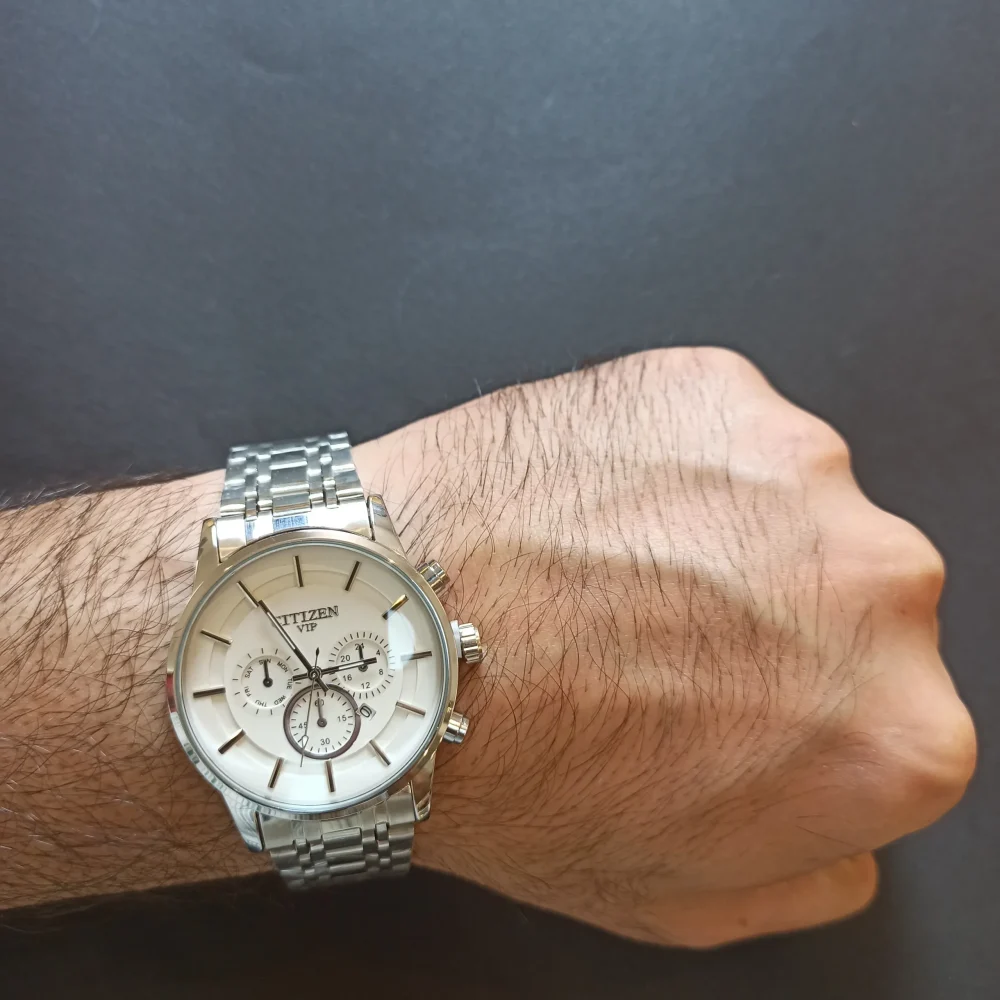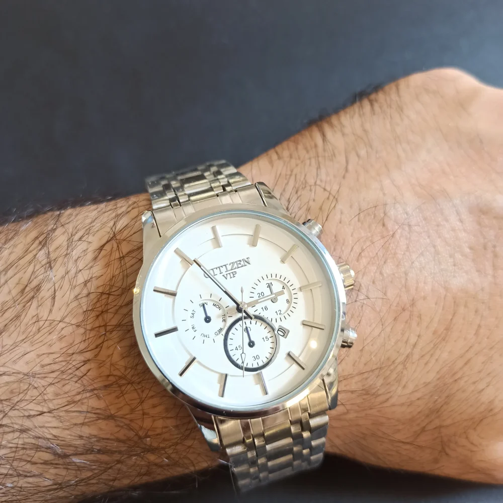 طراحی این ساعت با قفل پروانه‌ای و قطر صفحه 43 میلی‌متری، جلوه‌ای مدرن و شیک به آن بخشیده است. ترکیب رنگ نقره‌ای در بند و قاب، همراه با صفحه سفید، این ساعت را به انتخابی ایده‌آل برای استایل‌های رسمی و روزمره تبدیل کرده است. همچنین، حک برند سیتیزن داخل ساعت اصالت و کیفیت آن را به خوبی نشان می‌دهد.