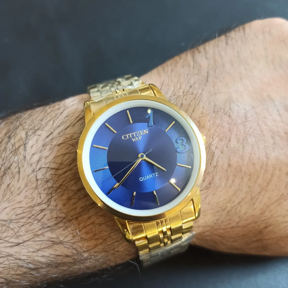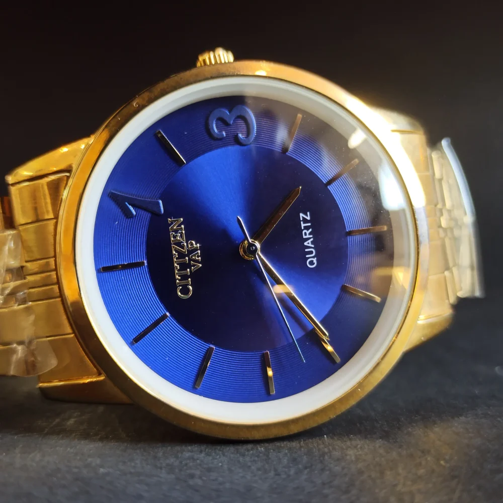 طراحی ظاهری ساعت، ترکیبی از رنگ‌های نقره‌ای، طلایی و آبی است که جلوه‌ای لوکس به آن بخشیده است. سگمنت سه‌بعدی صفحه به همراه حک برند سیتیزن داخل ساعت، اصالت و جزئیات دقیق این محصول را به نمایش می‌گذارد. قفل پروانه‌ای نیز استفاده از این ساعت را آسان و ایمن کرده است.