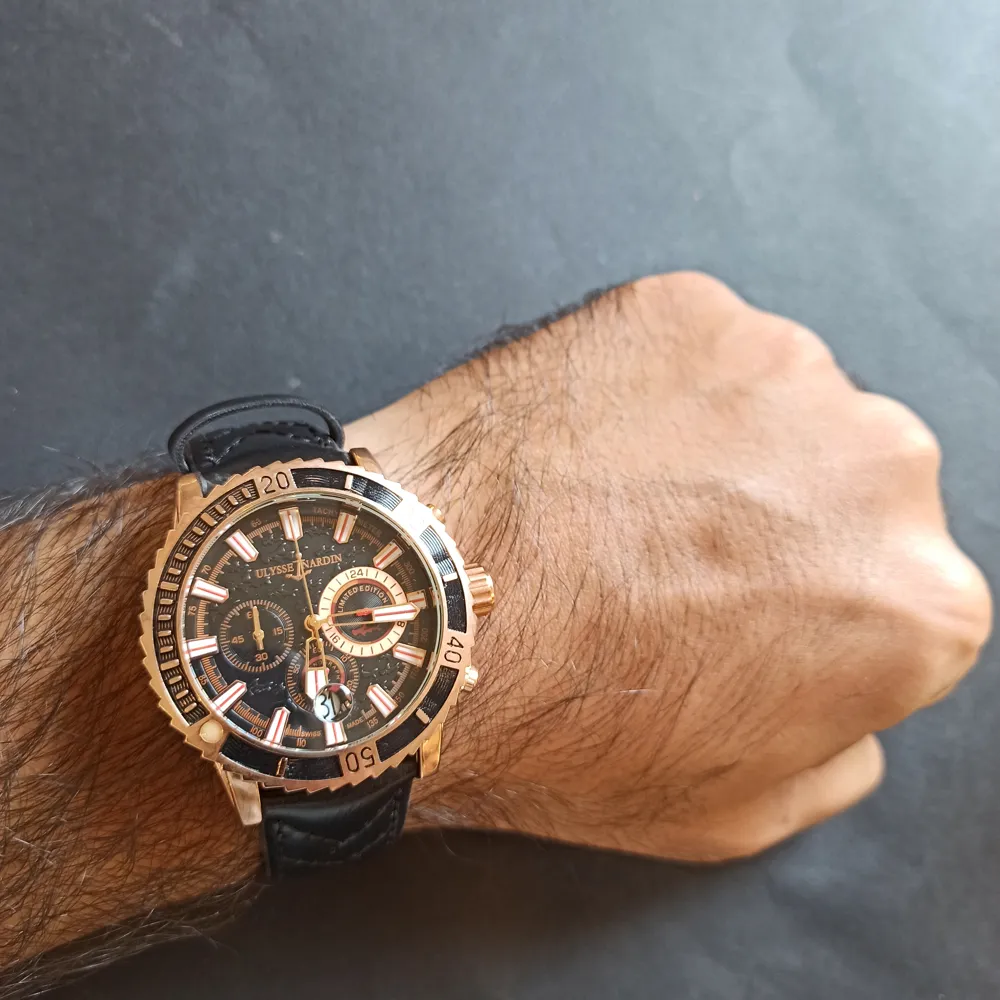سه موتور فعال این ساعت نشاندهنده دقت و عملکرد عالی آن است. این ویژگی به شما امکان میدهد تا علاوهبر زمان، از امکانات بیشتری مانند کرنوگراف و تاریخشمار بهرهمند شوید. طراحی صفحه نمایش نیز بهگونهای است که خوانایی بالایی داشته و با جزئیات دقیق و حرفهای توجه هر بینندهای را به خود جلب میکند.
