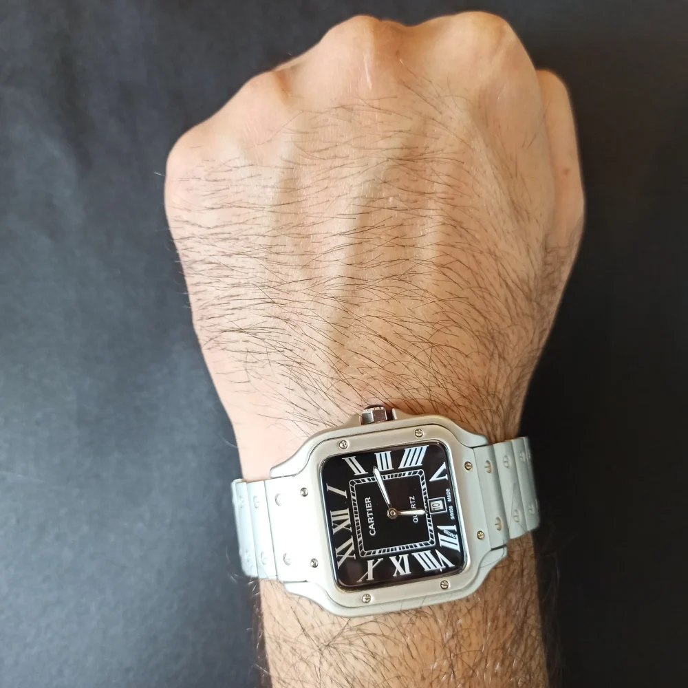 این ساعت با قاب و بند ساخته‌شده از فولاد استیل ۳۰۴ ضد زنگ و رنگ ثابت، در برابر خط و خش و تغییر رنگ مقاوم است. شیشه کریستالی ضدخش آن، جلوه‌ای شفاف و مقاوم به صفحه ساعت می‌بخشد. همچنین، سگمنت سه‌بعدی به همراه حک برند کارتیر در داخل ساعت، جلوه‌ای منحصر به فرد به این محصول بخشیده است.